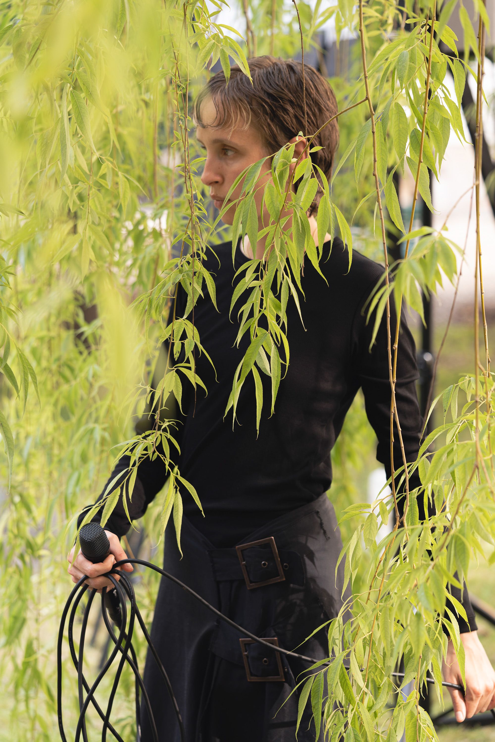H.A.R.I. (2023) is a collaboration between artists Oliviero Fiorenzi and Fabrizio Vatieri, with performer Francesca Flora, exploring the concept of greenwashing through an immersive performance. The work revolves around the character Hari, inspired by Stanisław Lem’s novel Solaris, and features a series of green and black panels reinterpreting symbols of often misleading environmental certifications. The ambiguity of greenwashing is questioned, provoking reflection on artistic activism: is it truly possible to change anything within a system that continuously deceives? The artists, aware of the difficulties and contradictions in the art context, face this challenge with enthusiasm, seeking moments of authentic communion without personal expectations.