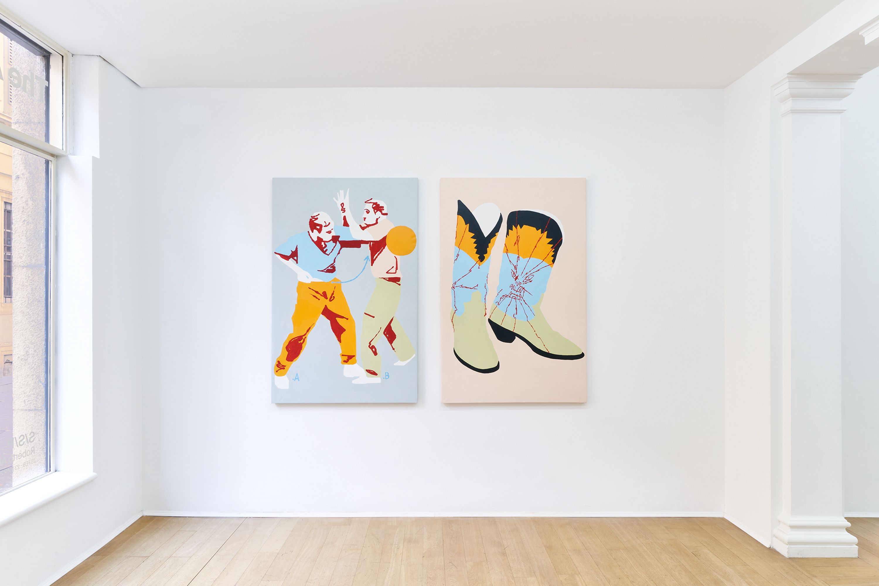 S/S/P is a two-person exhibition by Roberto Alfano and Oliviero Fiorenzi held at The Address gallery in Brescia. The exhibition explores the relationship between signs, landscape, and the imagery of the province through practices intertwining painting, memory, and visual language.