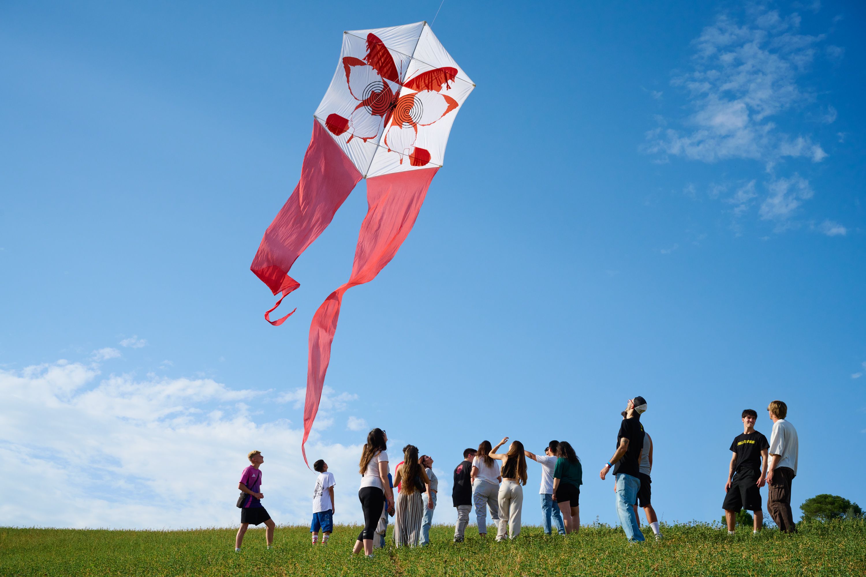 GIANT KITE (2024) is a project by Oliviero Fiorenzi, curated by Matilde Galletti, involving the community of District 8 – Pozzo Alto – Borgo Santa Maria in Pesaro. Inspired by the Japanese ‘Hamamatsu Kite Festival’, it led to the creation of a large kite as a symbol of presence and identity, culminating in a collective flying performance. The initiative is part of the program “From Sculptures in Cities to Art for Communities,” curated by Marcello Smarrelli, for Pesaro Capital of Culture 2024.