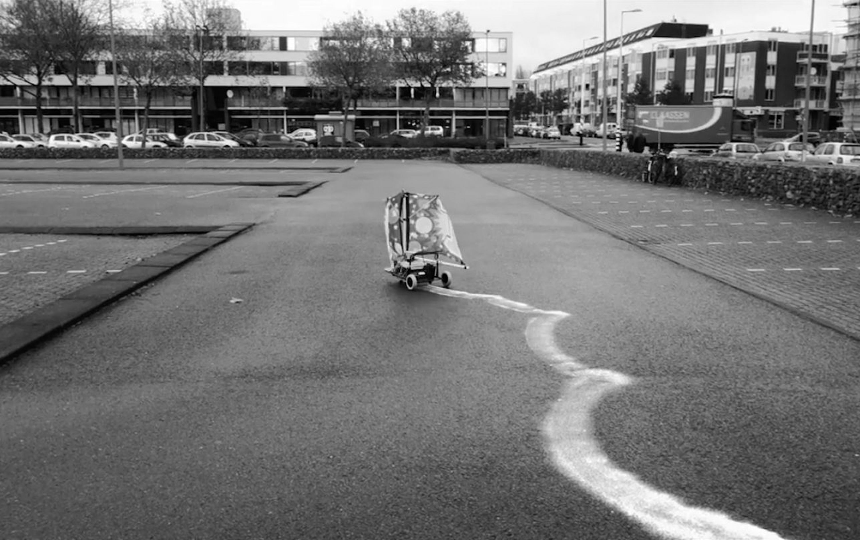 Kooning Academie of Rotterdam. The aim of course of Critical Studies was to hack a code. Received the brief I decided to work outside, in the city of Rotterdam. The idea of my project was to delegate an extremely illegal action like hacking the traffic laws to a randomic and chaotic element like the wind.