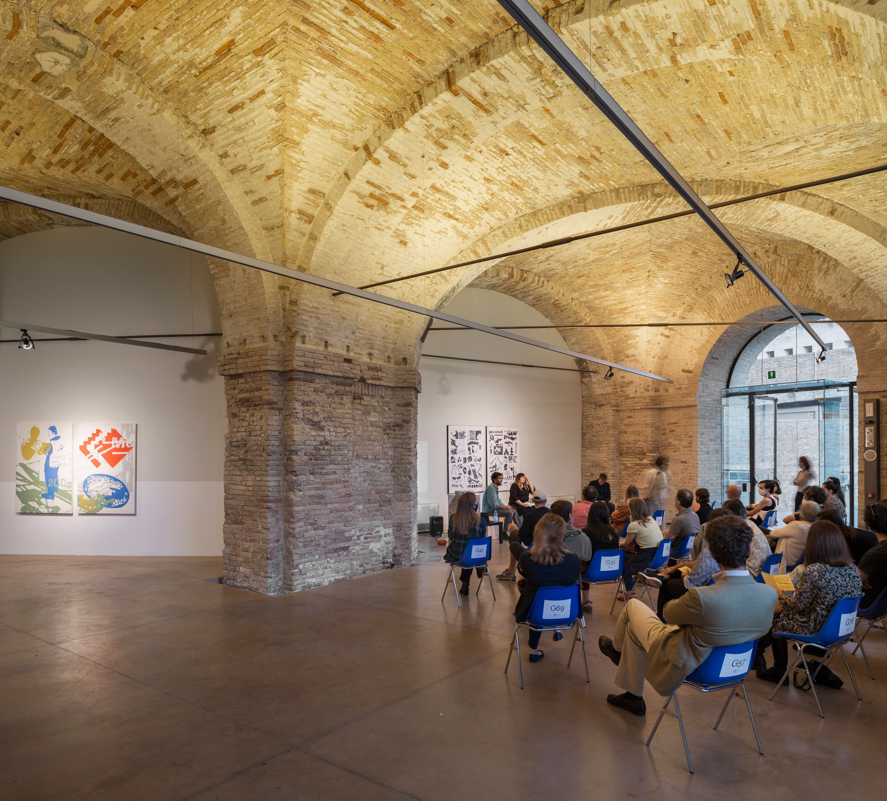 The artist walked daily through the urban area surrounding the Mole, collecting information, images, memories, symbols, and objects that narrate both the history of the place and his personal journey through it. This experience was then translated into a mural painting on the exhibition wall in the courtyard of the Mole, offering the public a visual dialogue between inside and outside, between urban life and the creative dimension.